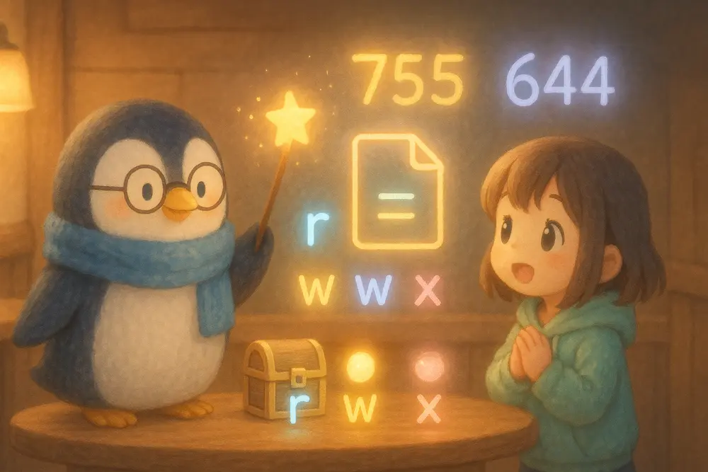 ターミナルを使って、ファイルやフォルダの「パーミッション(アクセス権)」について学びます。誰が読む・書く・実行できるのかを決めるしくみを、カフェの鍵やドアのルー…