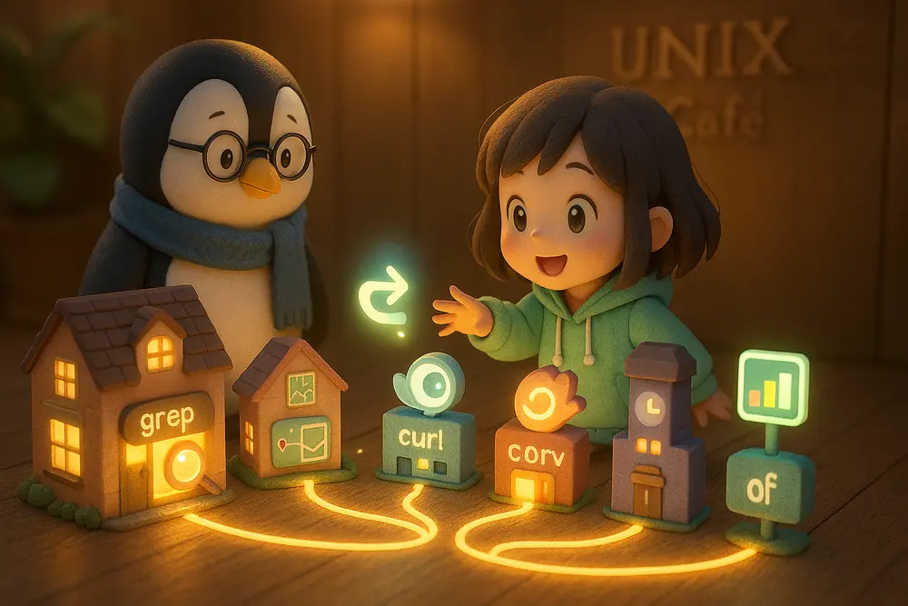 ようこそ、UNIX Cafeへ UNIX Cafeでは、mac(macOS)と Linux のターミナルで使えるコマンドを、やさしく・楽しく・自分のペースで学べるようにまとめています。 「ター...
